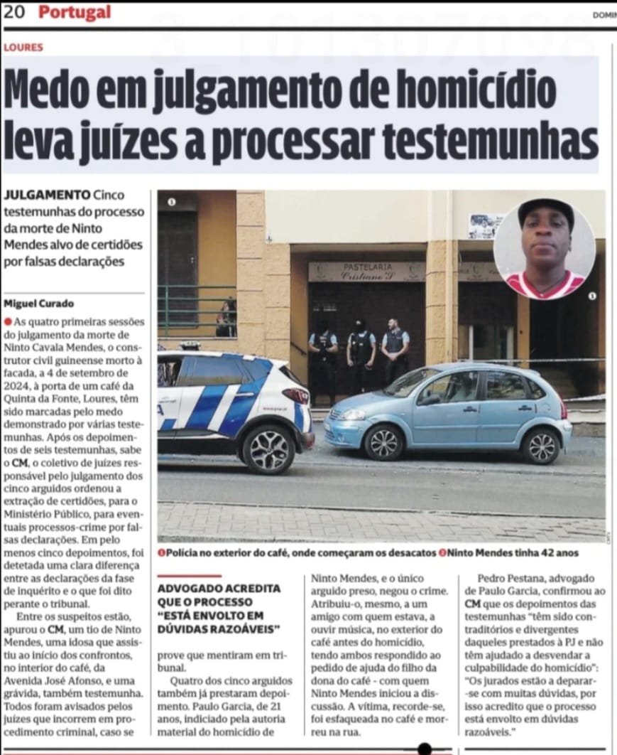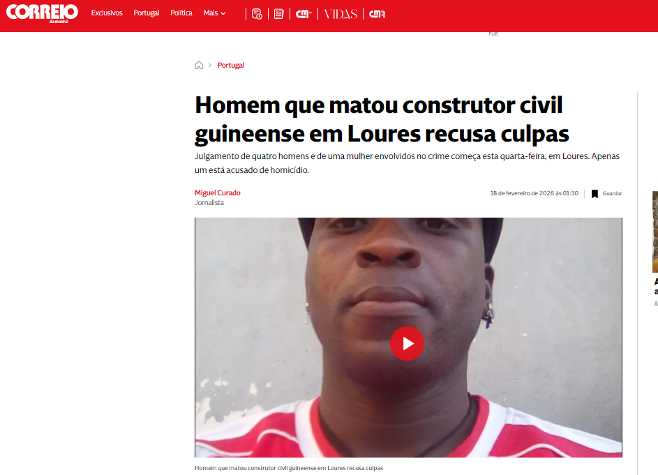Homem que matou construtor civil guineense em Loures recusa culpas.