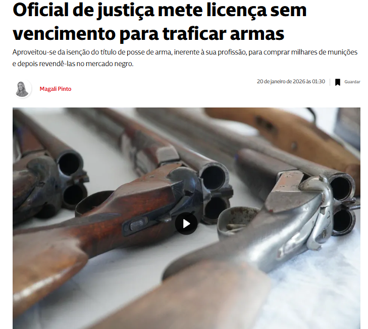 Oficial de justiça mete licença sem vencimento para traficar armas.