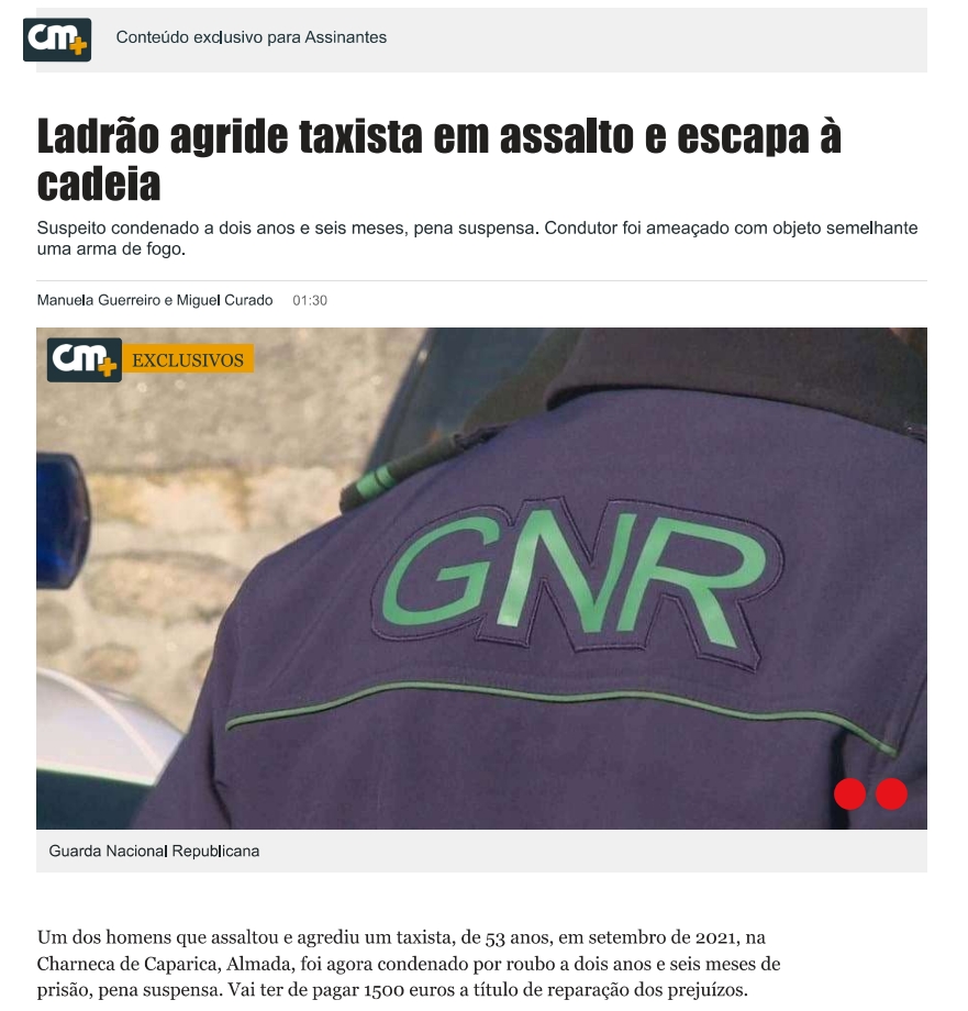 Taxista agredido em Almada engana ladrões.