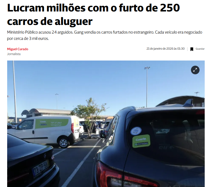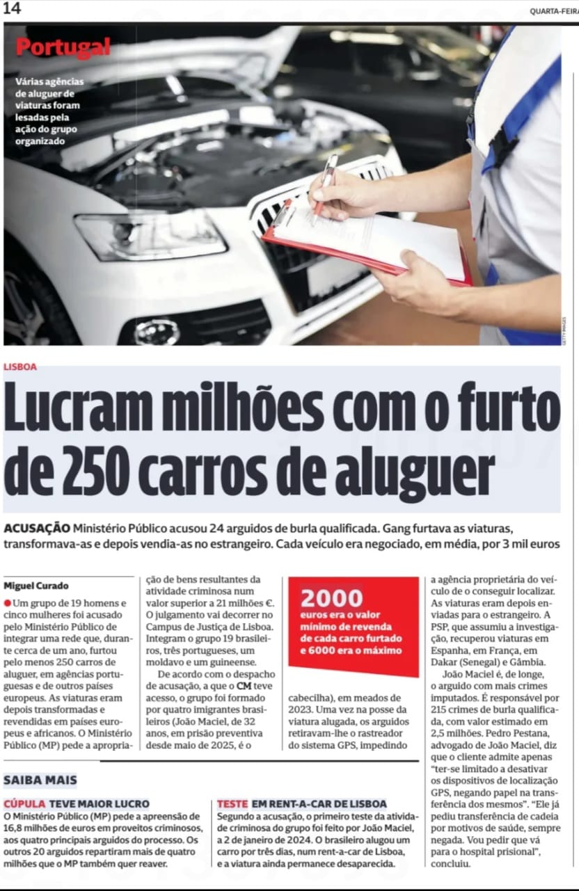 Um grupo de 19 homens e cinco mulheres foi acusado pelo Ministério Público de integrar uma rede que, durante cerca de um ano, furtou pelo menos 250 carros de aluguer, em agências portuguesas e de outros países europeus. As viaturas eram depois transformadas e revendidas em países europeus e africanos.