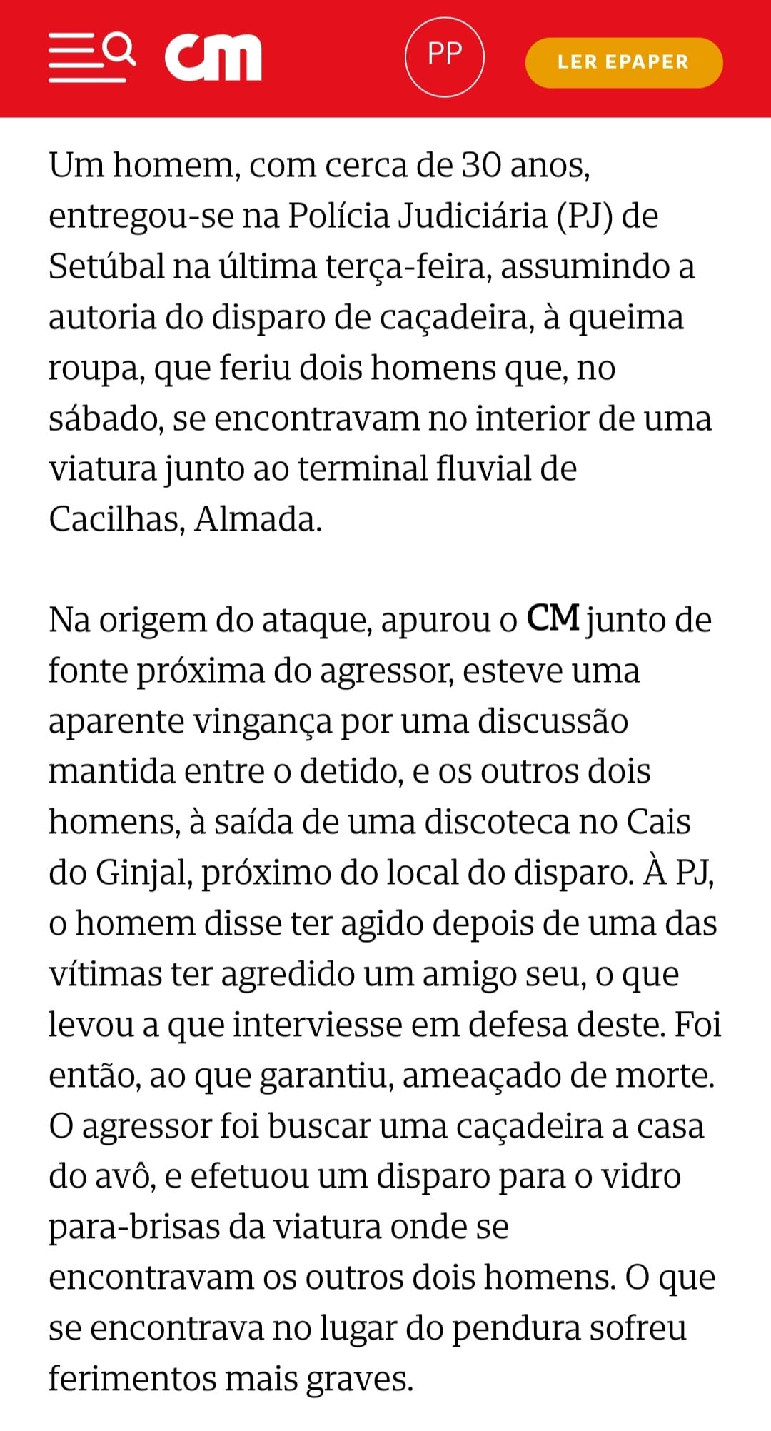Detido homem que atingiu três pessoas com tiros de caçadeira em Almada.