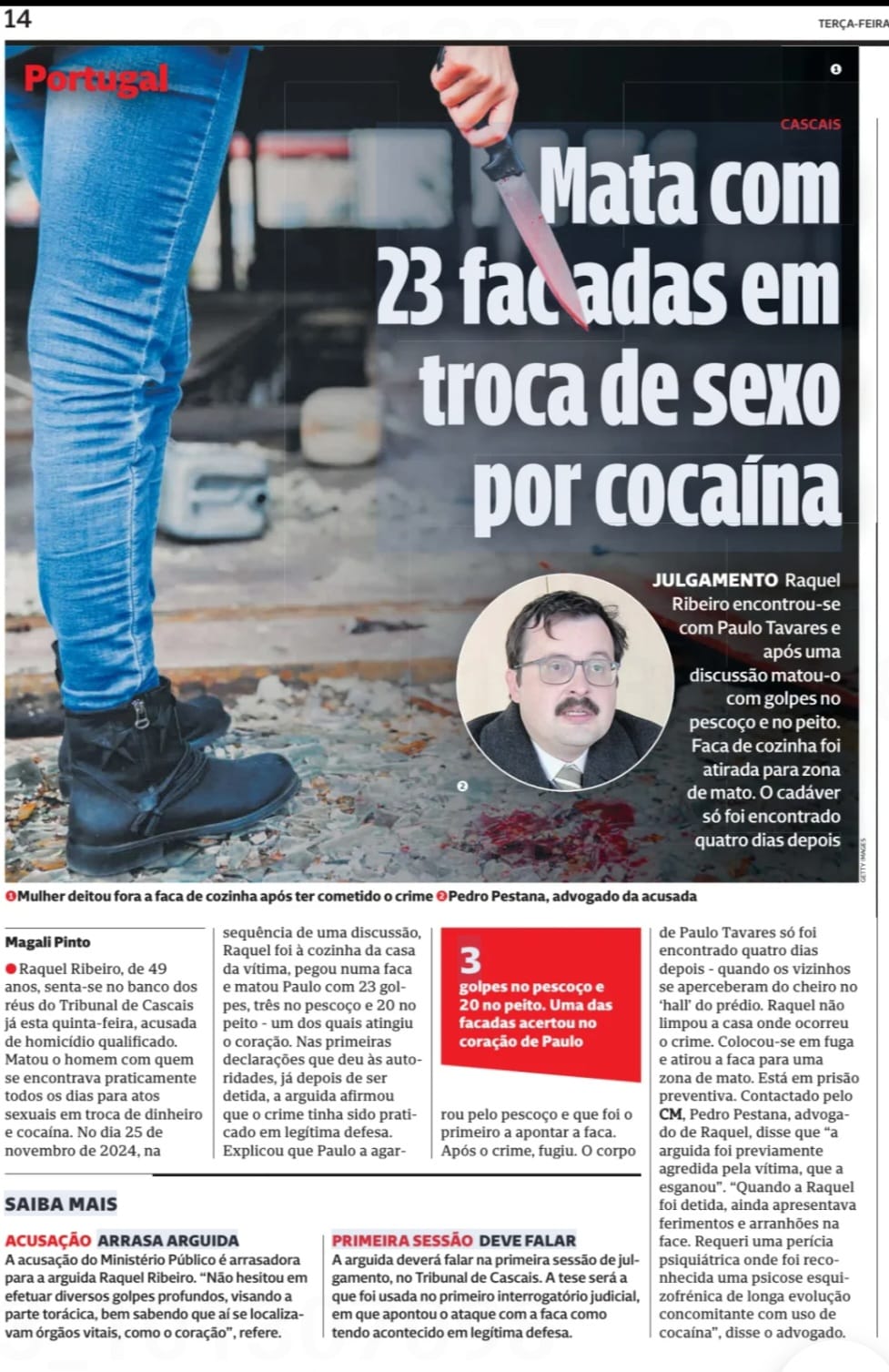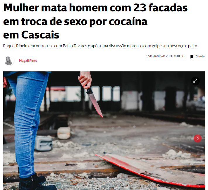 Mulher mata homem com 23 facadas em troca de sexo por cocaína em Cascais