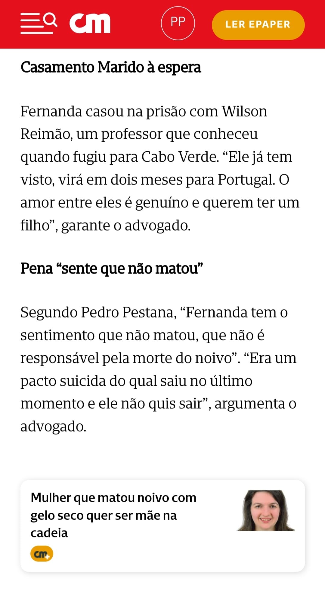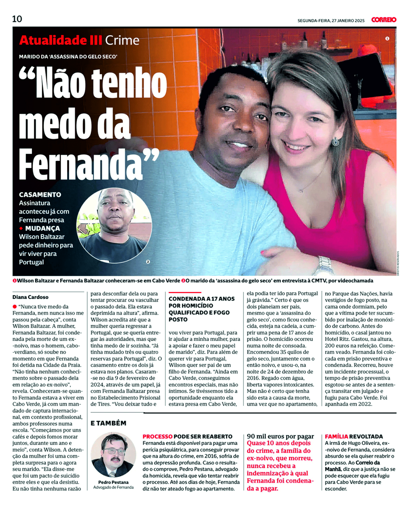 “Não tenho medo da Fernanda”: marido da 'assassina do gelo seco' quer vir para Portugal ter com a mulher
