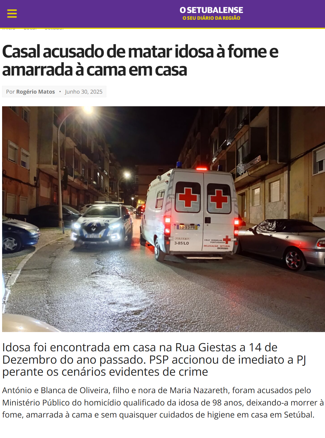 Casal acusado de matar idosa à fome e amarrada à cama em casa.