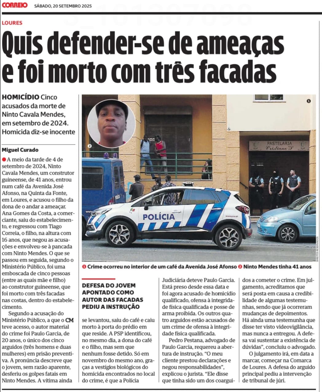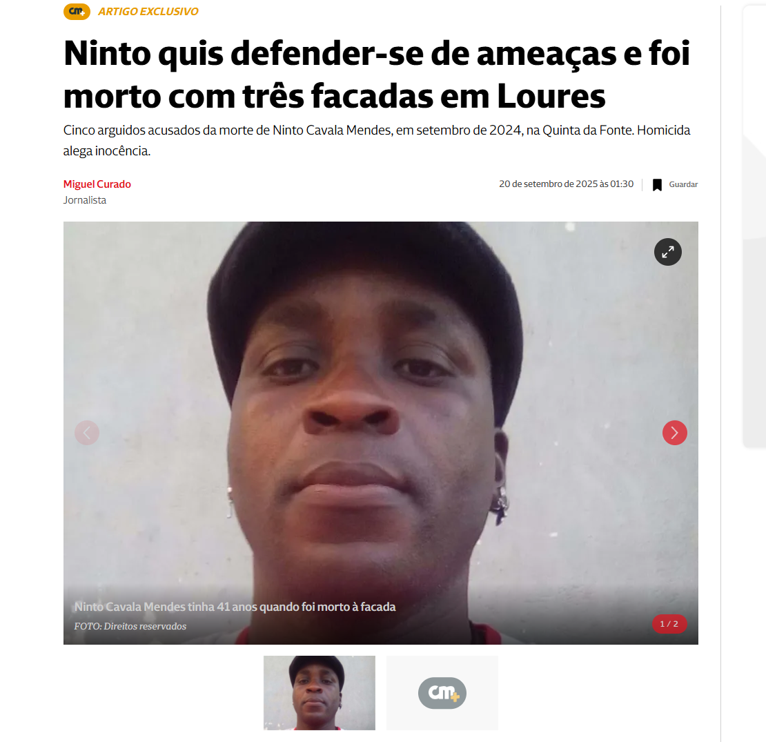 O advogado do jovem que foi preso pelo homicídio de Ninto Mendes, de 41 anos, em confrontos que envolveram quatro pessoas num café de Loures.